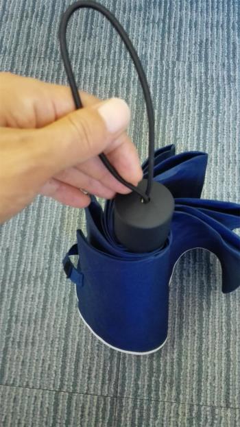 四, 最后將帶子貼牢,再多轉(zhuǎn)幾下,則折疊傘就折疊完成了。