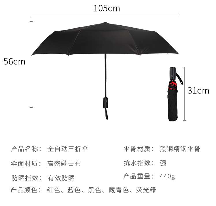 產(chǎn)品布料:190T高密碰擊布傘架 :纖維+鐵