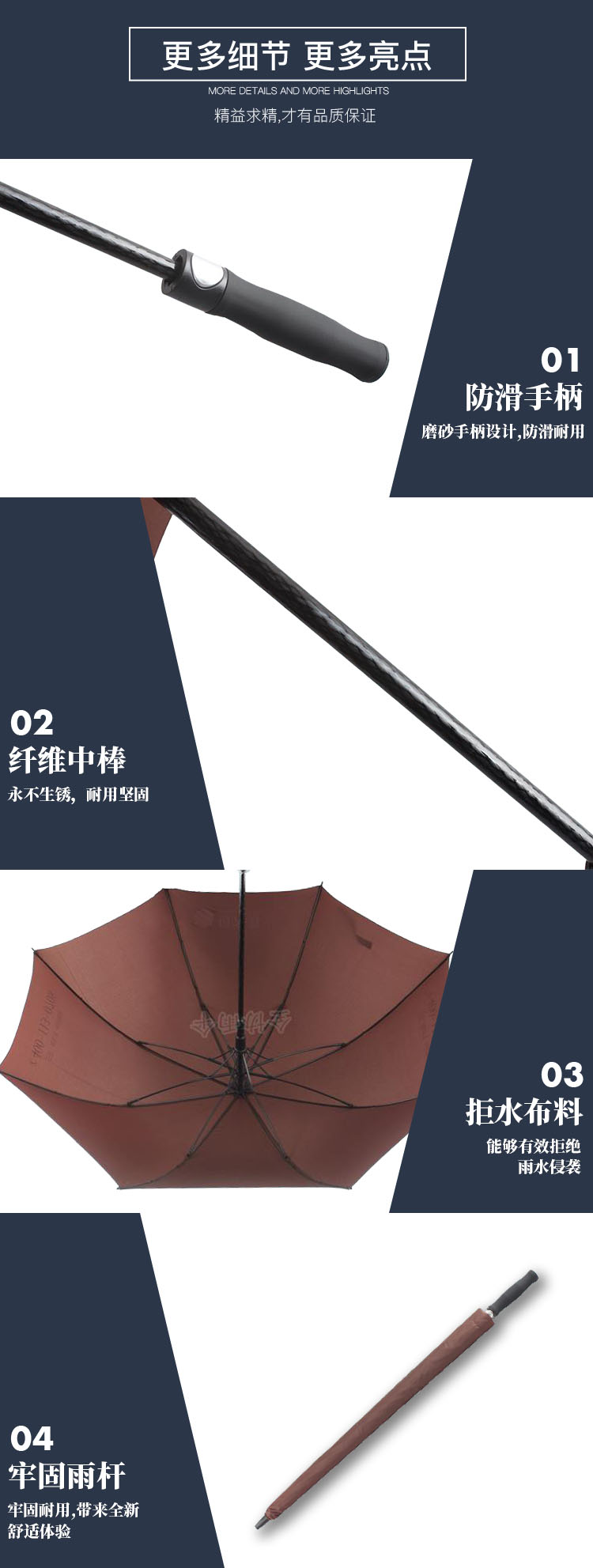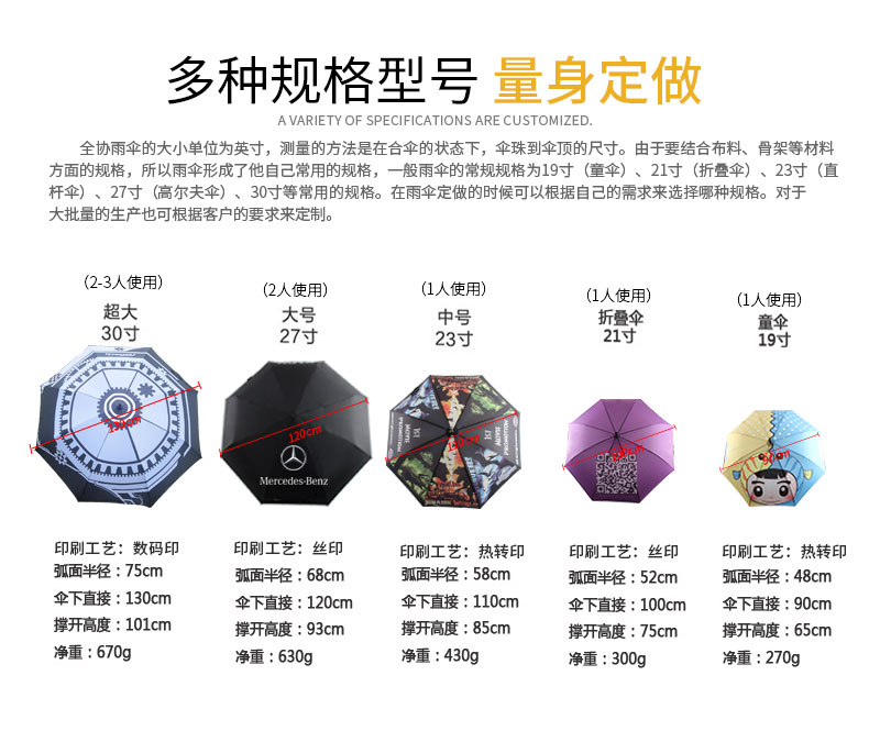 產(chǎn)品說明:雨傘,傘架,傘面,傘頭都可以根據(jù)客戶的需要進行定制