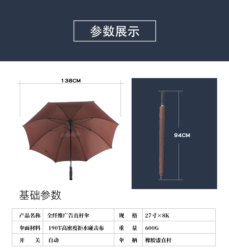 27寸8骨全纖維高密度拒水碰擊布廣告直桿傘定制